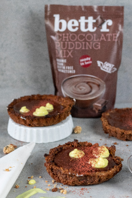 Za ovaj recept koristili smo novi Bettr čokoladni puding bez glutena. Savršen je dodatak gotovo svakom desertu. Možda vam čak vrati sjećanja iz djetinjstva na tople, kremaste pudinge koje su radile vaša majka ili baka. A najbolji dio? Puding od čokolade gotov je za samo 1 minutu!