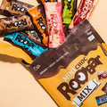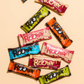 Roobar Mix Mini Choco Bars je pakiranje pojedinačno zapakiranih mini organskih pločica. Savršen je za dijeljenje, kao slatkiš ili za druženje. Uživajte u okusima jagode, višnje, kokosa, lješnjaka, badema i pistacija u svom NOVOM omiljenom pakiranju!