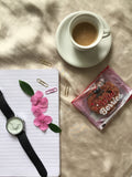Kada u kolačiću spojite trpki okus borovnica i brusnica s nježnom slatkoćom kapljica kakao maslaca, sigurno ćete uspjeti! Crvena boja i neodoljiv okus čine ga posebnim i nesvakidašnjim. Boja dolazi od cikle u prahu, a blagi okus dolazi od kokosa i sirupa od datulja.